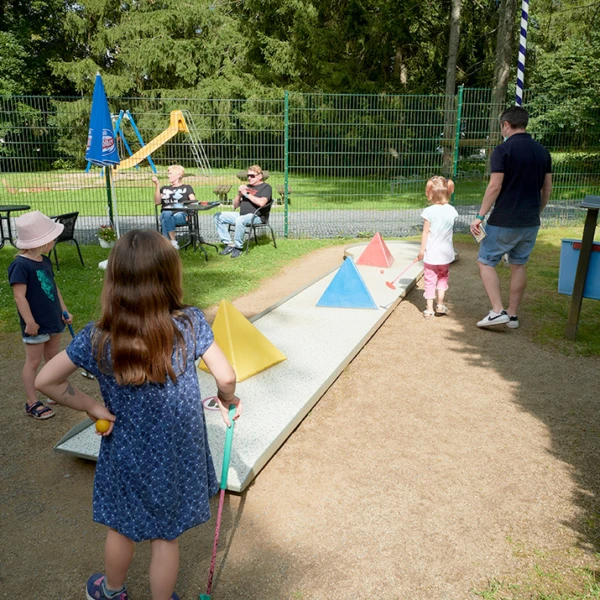 Auch für die kleinen Gäste ist gesorgt. Eine Tischtennisplatte, ein Spielplatz, eine kleine Mountainbikestrecke sowie eine coole Rutsche in den Postweiher sorgen für Spaß für Groß und Klein. Gegenüber dem Campingplatz gibt es einen Freizeitbereich mit Minigolfplatz, Biergarten, Festwiese für Gruppenveranstaltungen und einem Fußballplatz. Genau das Richtige für den großen und kleinen Ferienspaß.